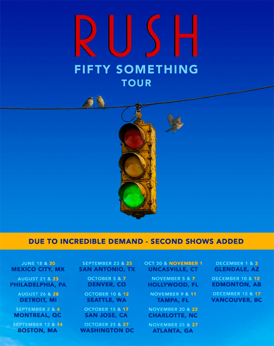 Rush llevará su música a ciudades de Canadá, Estados Unidos y México a partir del 7 de junio de 2026, con inicio en el Kia Forum de Los Ángeles. En cada concierto, la banda presentará una selección de 35 canciones, que incluirán tanto sus grandes éxitos como los temas más aclamados por los fans. Tras el anuncio de Lee y Lifeson de las fechas iniciales de su gira para 2026, realizado a principios de octubre, las entradas se agotaron al instante. Debido al aumento de la demanda, duplicaron la duración del tour antes de añadir más conciertos.