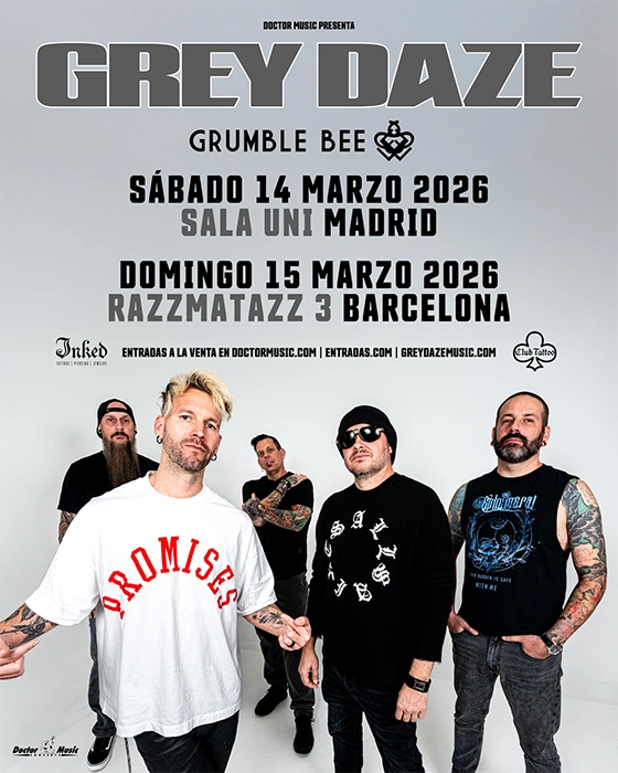 Grey Daze, formada actualmente por Chris Hodges (cantante), Sean Dowdell (batería), Cristin Davis (guitarra), Evan Nichols (bajo) y Kenny Bulka (guitarra), volverá a nuestro país ofreciendo un concierto en Madrid y otro en Barcelona. La banda, durante esta misma entrevista, que puedes leer aquí, aseguró que están muy “emocionados por ver cómo reaccionan nuestros fans españoles”. Y puedes conseguir tus entradas para estos conciertos en este enlace.