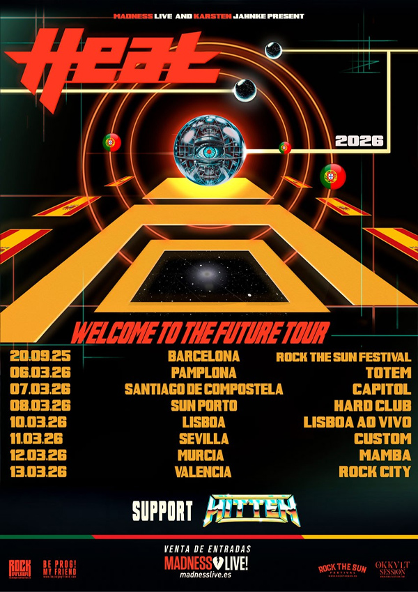 La energía desbordante de los de Kenny Leckremo volverá a nuestro país con citas confirmadas en Barcelona dentro del inminente festival Rock the Sun, y ya en marzo de 2026 Pamplona, Santiago de Compostela, Sevilla, Murcia y Valencia, a las que hay que añadir las vecinas Oporto y Lisboa en una gira que contará con la participación de los murcianos Hitten, que repetirán la experiencia de acompañar a la banda sueca, como ya vivimos en la visita de H.E.A.T a Madrid el pasado mes de mayo.