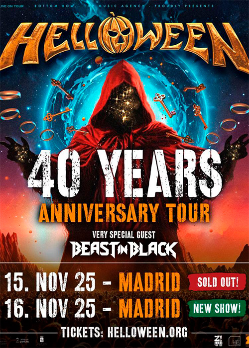 Ya solo queda una semana para que Helloween aterrice en Madrid con su gira mundial “40 Years Anniversary Tour”, que ya ha hecho temblar los escenarios de Londres, París y Luxemburgo, recibiendo una respuesta espectacular por parte del público. La Cubierta de Leganés (Madrid) será el único escenario en España que acoja este espectáculo, con una puesta en escena impresionante, más de dos horas de concierto y un repertorio que celebra cuatro décadas de historia del power metal.