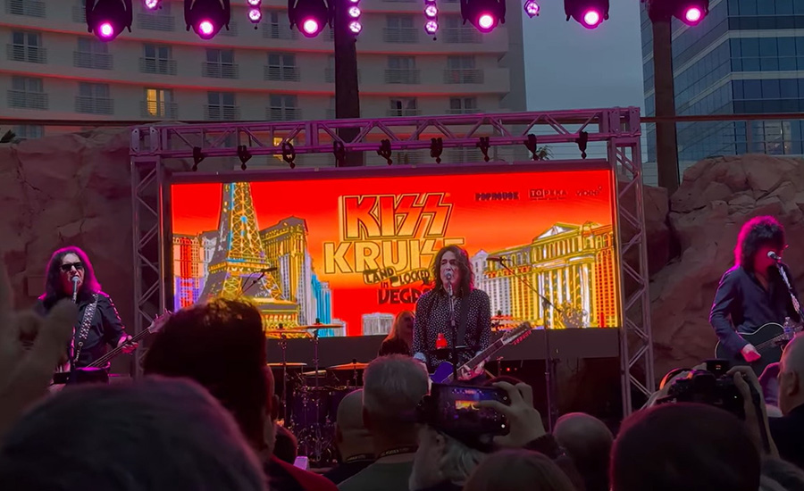 Los legendarios rockeros dieron comienzo al “Kiss Kruise: Landlocked In Vegas” con una actuación acústica al aire libre el viernes 14 de noviembre en el Virgin Hotels Las Vegas.