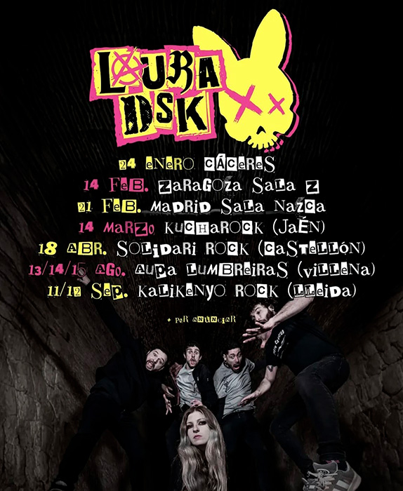 Acompañada por una banda formada por Charly (guitarra y coros), Bastian (batería), Sergio (trompeta y coros) y Santi (bajo), Laura DSK y los suyos forman un bloque explosivo sobre el escenario. Sus conciertos son auténticos: directos, callejeros y sin filtros. Si quieres ver cómo se las gastan en el escenario, esta es tu oportunidad, ya que harán una gira de presentación de este trabajo. Estas son todas las fechas confirmadas, pero próximamente anunciarán más: