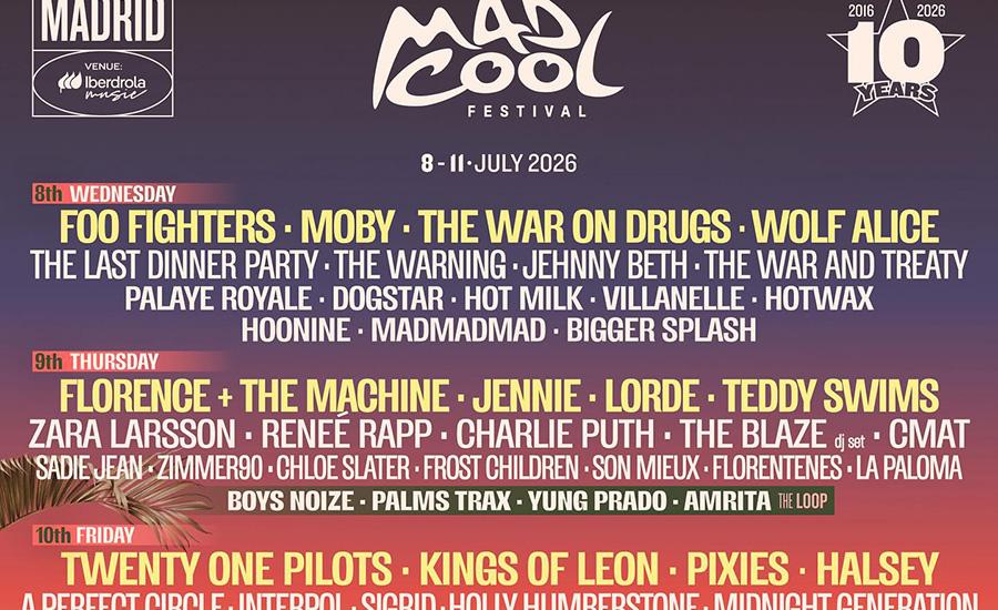 - Mad Cool Festival anuncia a Foo Fighters, The Black Crowes, Twenty One Pilots, Pixies o The Warning para su cartel de 2026 - 10 noviembre 2025