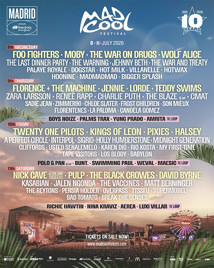 El cartel de la edición que celebrará el décimo aniversario de Mad Cool Festival vuelve a crecer para incorporar seis nuevos nombres que se suman a la destacada propuesta que en 2026 llevará al Recinto Iberdrola Music de Madrid a Foo Fighters, The Black Crowes, Pixies o The Warning entre los días 8 y 11 de julio.