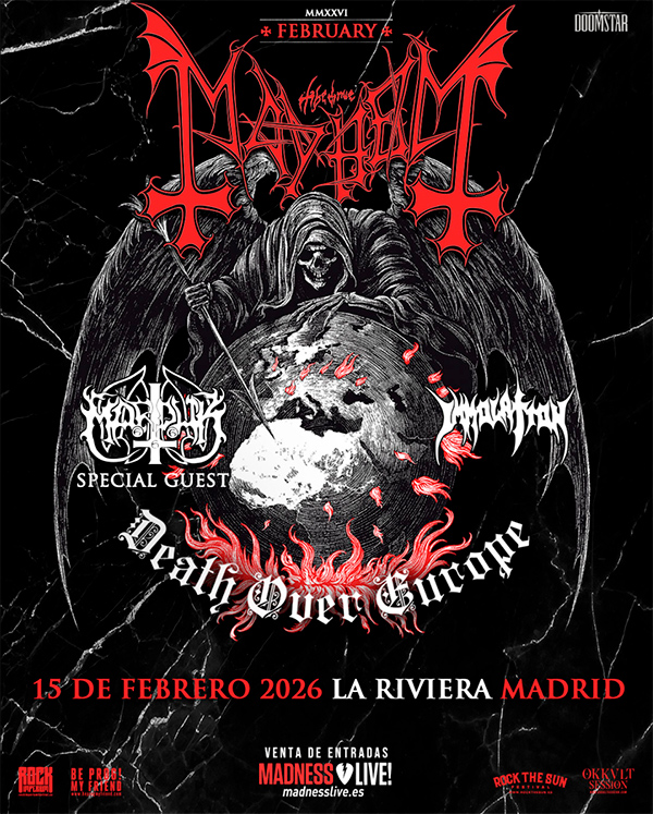 Una de las giras más brutales, intensas y oscuras que llegarán a nuestro país en 2026 descargará en Madrid con un cartel realmente demoledor que se hará con las almas de los seguidores más extremos con leyendas como Mayhem o Marduk unidas en un cartel que se completará con la participación de los deathmetaleros neoyorquinos Immolation. Las entradas se pondrán a la venta este viernes, 10 de octubre, a las 11:00, en este enlace.