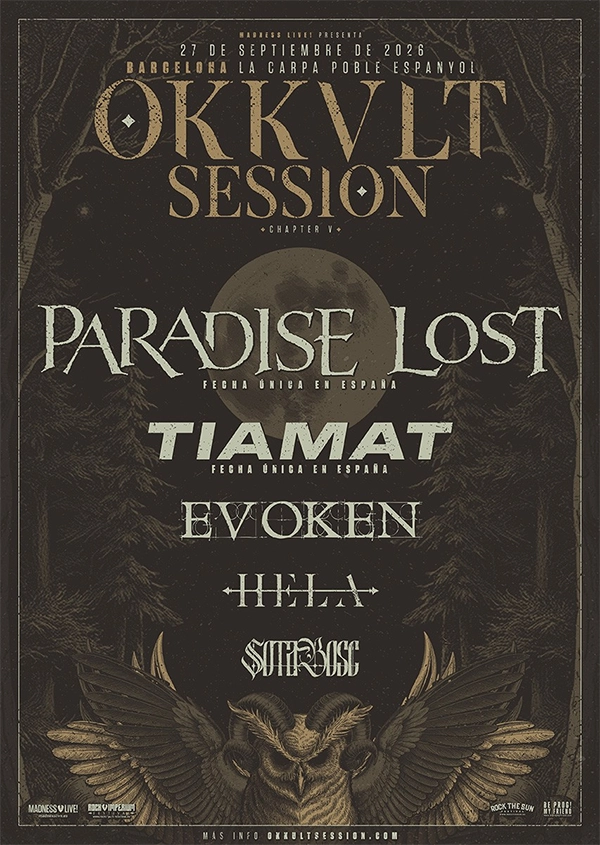 El 27 de septiembre es la fecha en la que los amantes de la más profunda oscuridad musical podrán sumergirse en la experiencia de Okkult Session, que en 2026 completa su oferta de bandas con el majestuoso sonido de los británicos Paradise Lost, el ambiente gótico desde Suecia con Tiamat, los estadounidenses Evoken desplegando un devastador funeral doom, y ejerciendo de anfitriones tendremos el personal post black de Sotabosc, y el doom melancólico y ceremonial de Hela.