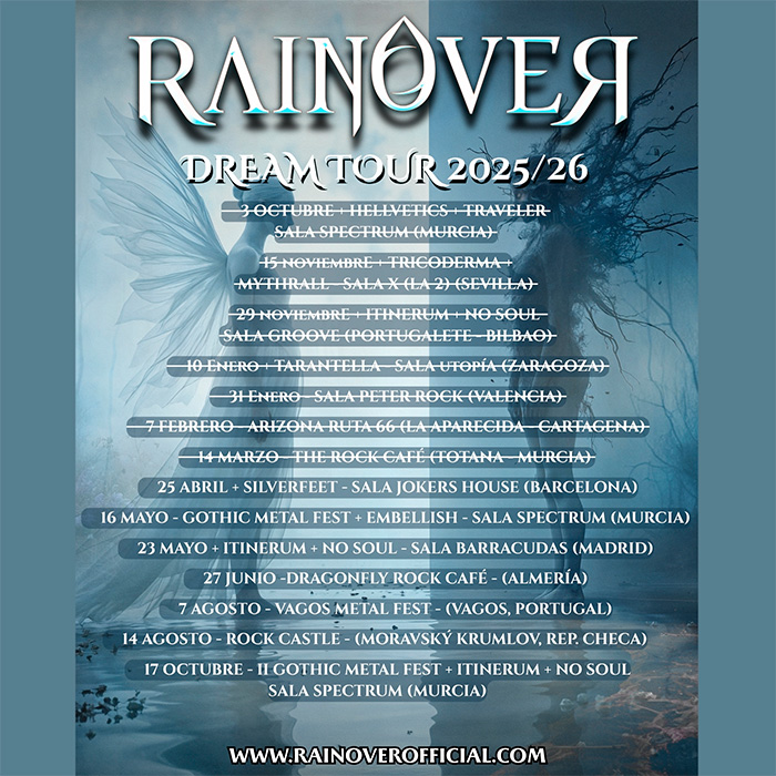 Rainover llevará con la cabeza bien alta su música al extranjero, sin descuidar a sus fans españoles. En su agenda ya figuran conciertos en Madrid, Barcelona y su Murcia natal, entre otras ciudades. Sin embargo, como adelantábamos, su música traspasará fronteras gracias a su participación en el prestigioso festival Rock Castle (República Checa) y en el Vagos Metal Fest (Portugal).