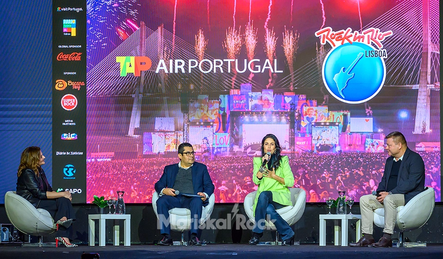 Paloma Utrera, responsable de ventas de la empresa aeronáutica TAP, ejerció de maestra de ceremonias durante el acto. Un evento en el que también participaron Mario Cruz y Frederic Gossot por parte de la mencionada aerolínea, y Roberta Medina, vicepresidenta de Rock in Rio e hija del visionario fundador del festival, el empresario brasileño Roberto Medina. Nuestro compañero Mauro Nicolás Gamboa pudo realizar un par consultas a Roberta, interesándose primero por la evolución del significado de la propia palabra “Rock” como sello del festival que en sus años de trayectoria tuvo en su escenario a bandas como AC/DC, Queen o Iron Maiden, y que ha ido abriendo el abanico a otros sonidos en su expansión también fuera de tierras brasileñas, con Lisboa o Madrid como destino.