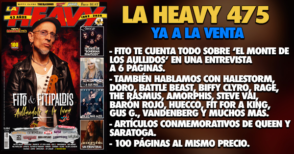 Saratoga es una de las grandes bandas que esperan en el número 475 de La Heavy, donde celebramos el 30º aniversario de su disco debut. Fito es el gran protagonista de la portada, en la que vemos al bilbaíno acompañado por Queen, Halestorm, Doro o Amorphis entre otros, además de contenidos destacados de Biffy Clyro, The Rasmus, Barón Rojo, Rage, Huecco y muchos más. Corre a tu kiosco o visita nuestra tienda online para no perderte nada.
