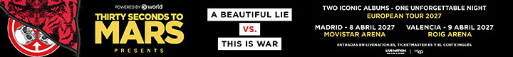 Ya están a la venta las entradas para los conciertos que Thirty Seconds To Mars ofrecerá en Madrid y Valencia en el mes de abril de 2027 dentro de la gira especial “A Beautiful Lie vs This Is War”. El 8 de abril en el Movistar Arena de Madrid y el 9 de abril en el Roig Arena de Valencia tendremos a los de Jared Leto repasando los temas más representativos de los discos ‘A Beautiful Lie’ y ‘This Is War’, y para disfrutar de estos espectáculos hay disponibles para cada concierto distintos tipos de entradas.