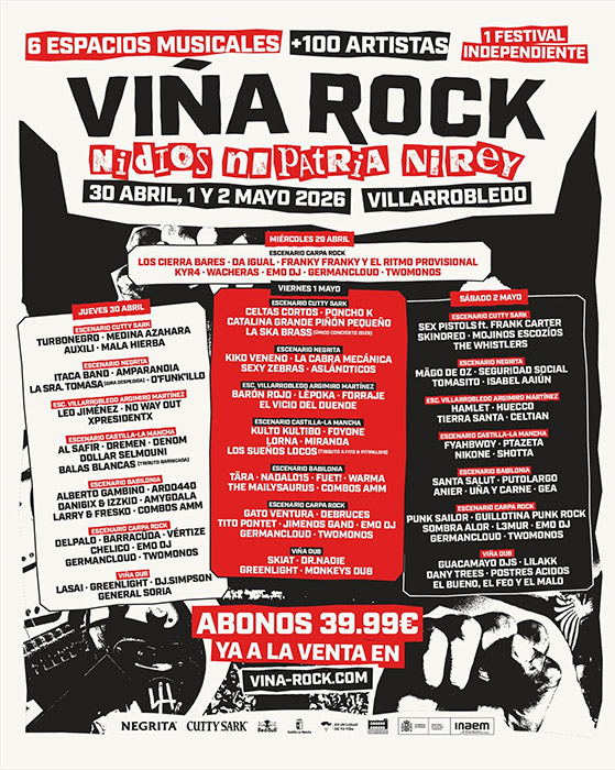 - Viña Rock anuncia la distribución por días de su cartel con Sex Pistols, Mägo de Oz, Barón Rojo o Medina Azahara - 21 abril 2026