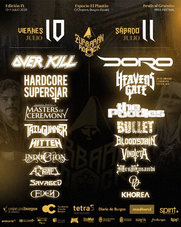 Una vez completado el espectacular cartel que nos propone el festival burgalés Zurbarán Rock para su novena edición, con Overkill, Doro o Hardcore Superstar liderando la programación que se cerró con las incorporaciones finales de Bullet y Hitten, llega la división de todos sus nombres entre las jornadas del 10 y el 11 de julio, que serán las que cuenten este 2026 con la potente descarga del festival gratuito que no deja de crecer a cada paso.