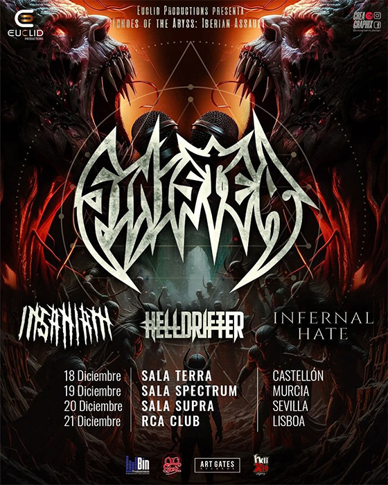 Hace unas semanas ya dimos la noticia de la gira de los holandeses Sinister en la Península Ibérica. Estarán acompañados en este periplo por Insaniam, Helldrifter y los canarios Infernal Hate. Serán tres fechas en nuestro país, en una gira de metal extremo que comienza ya, terminando con show extra en Portugal que también mentamos: