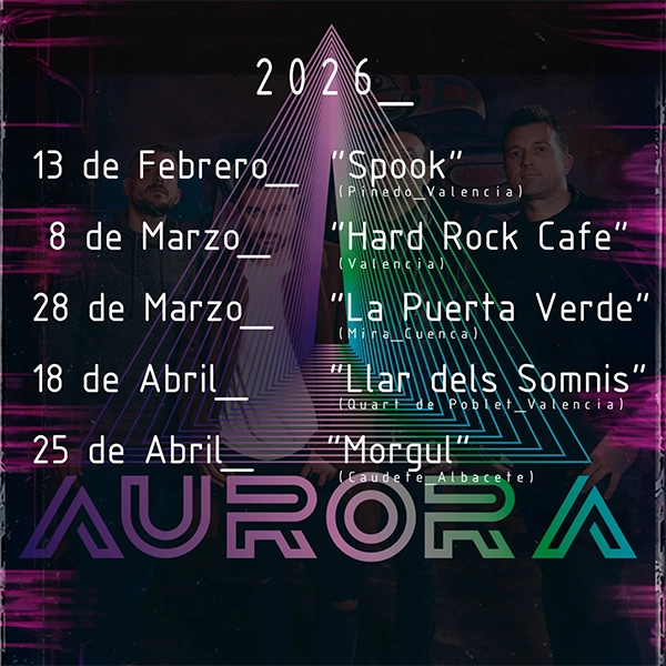 Mientras seguimos esperando la llegada de los nuevos singles que los valencianos Aurora están terminando de afilar para un nuevo ataque de rock y metal alternativo que dé continuidad a su primer EP, publicado en junio de 2024, para lo que falta muy poco, ya tenemos nuevas fechas de conciertos en los que disfrutar de su música en directo.