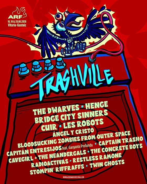 Recordemos que hablamos de la 24ª edición de ARF, que se celebrará en Mendizabala, Vitoria-Gasteiz, los días 18, 19 y 20 de junio de 2026. Y si el Azkena Rock Festival es un sagrado templo del rock and roll, Trashville es su desquiciada sala de máquinas a punto de explotar. Es decir, una carpa inmersa en un trepidante caos de forma permanente y donde la distorsión manda, y “un hábitat salvaje donde cada acorde puede hacer saltar los plomos y generar un cortocircuito que retumbe en todo Vitoria-Gasteiz”, como nos transmiten entusiastas desde la organización.