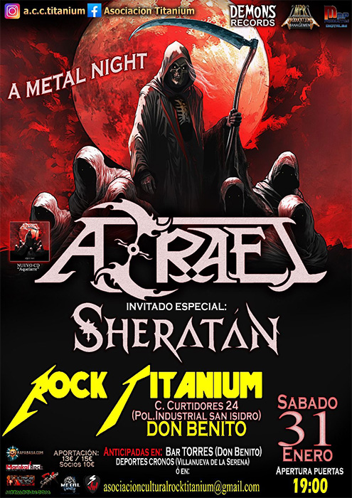 Aún quedan más espectáculos por confirmar. De momento, el pistoletazo de salida será en Extremadura, más concretamente en Don Benito, en la sede de la Asociación Cultural Rock Titanium. Estarán acompañados por lo que Azrael considera “una de las mejores bandas de Extremadura”: Sheratán. Las entradas estarán disponibles próximamente en el Bar Torres de Don Benito y en Deportes Cronos de Villanueva de la Serena.