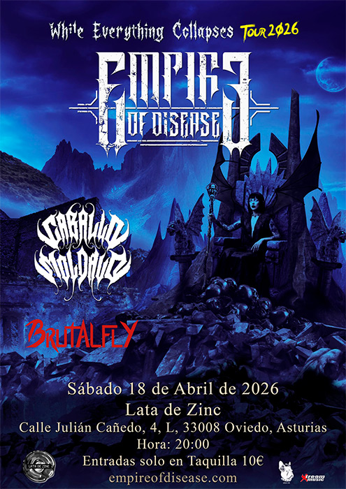 Completando la noche estará Empire of Disease, que presentará su último disco, 'While Everything Collapses'. Por su parte, Caballo Molvado completará esta cita, en la que probablemente presenten un puñado de canciones de 'Marcados' (2025). Si no te quieres perder esta cita triple en tierras asturianas, marca el 18 de abril en tu agenda. ¡No te arrepentirás!