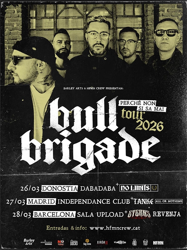 Los italianos Bull Brigade, todo un referente del punk rock y street punk europeo, ha programado tres conciertos en España el próximo mes de marzo dentro de la gira en la que están presentando los temas de ‘Perché Non Si Sa Mai’. San Sebastián, Madrid y Barcelona acogerán estos conciertos en los que estarán acompañados por bandas locales en una fuerte apuesta por la escena emergente de cada ciudad.
