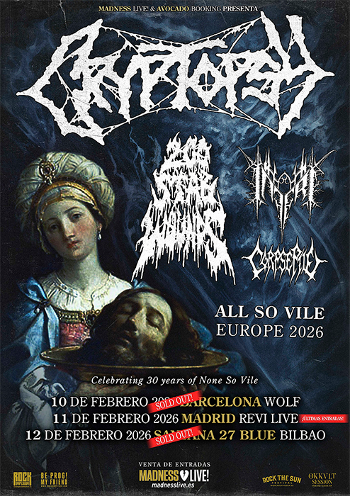 - Cryptopsy anuncia los horarios de sus conciertos en España junto a 200 Stab Wounds, Inferi y Corpse Pile, con los que celebrará el 30º aniversario de "None So Vile" - 9 febrero 2026