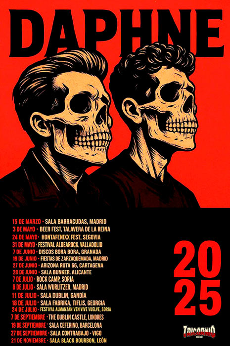 La trayectoria de Daphne no ha hecho más que crecer en los últimos meses. Con más de veinte conciertos a sus espaldas en lo que llevamos de 2025, repartidos por escenarios de España y Europa, el grupo se ha consolidado como una de las sensaciones más pujantes de la escena contemporánea.