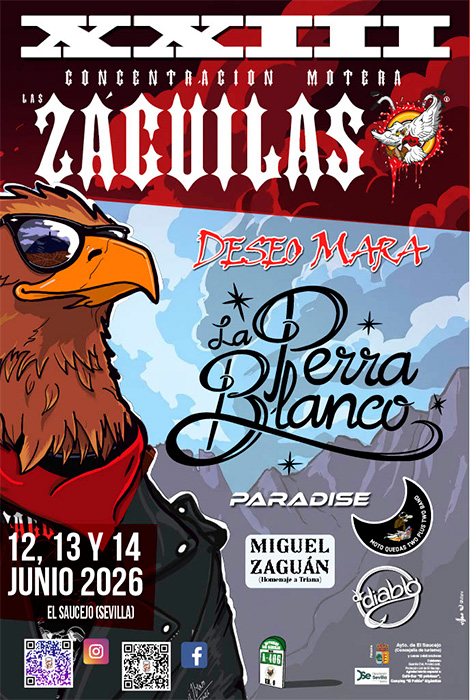 Frank Mara, conocido por su paso por Escuálidos, continúa despuntando con Deseo Mara, su travesía más personal. Tras sorprender con el lanzamiento de ‘Lágrimas’ (2025), el proyecto sevillano llevará su música a la XXIII Concentración Motera Las Záguilas. Los amantes del rock y de surcar el asfalto podrán disfrutar de este evento donde la música y el motor se dan la mano. Además del espectáculo de Deseo Mara, también podremos disfrutar del directo de La Perra Blanco, quien recientemente participó en el Decálogo de Mariskal, programa presentado por Mariskal Romero en RockFM.