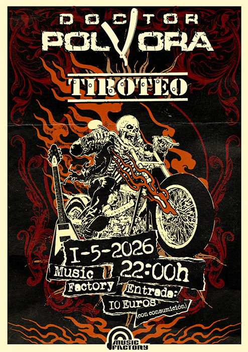 Durante el pasado 2025, Doctor Pólvora vivió un año de plenitud creativa gracias al lanzamiento de 'Enciende mi llama' (2025), su último trabajo discográfico, que continuarán defendiendo en este espectáculo. El 2019 fue el año que presenció el debut del conjunto, a través de 'No hay miedo', disco con el que ofrecieron un catálogo de nueve canciones mostrando el rumbo que tomaría el proyecto. Si quieres presenciar cómo el rock urbano de Doctor Pólvora une sus fuerzas con el hard rock y el heavy metal de Tiroteo, marca el 1 de mayo en tu calendario. ¡No te lo puedes perder!