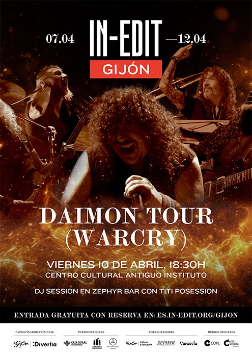 El viernes 10 de abril es el día marcado en el calendario para emitir el documental de Jorge Ilegal. Esta jornada arrancará a las 18:30 horas en el patio del Centro Cultural Antiguo Instituto con “Gira Daimon” (2025), dirigido por Titi Muñoz. El documental sigue a la banda asturiana Warcry durante su gira, ofreciendo una mirada cercana al funcionamiento interno de una gran producción de heavy metal. La sesión contará con la presentación de Titi Muñoz y de Víctor García.