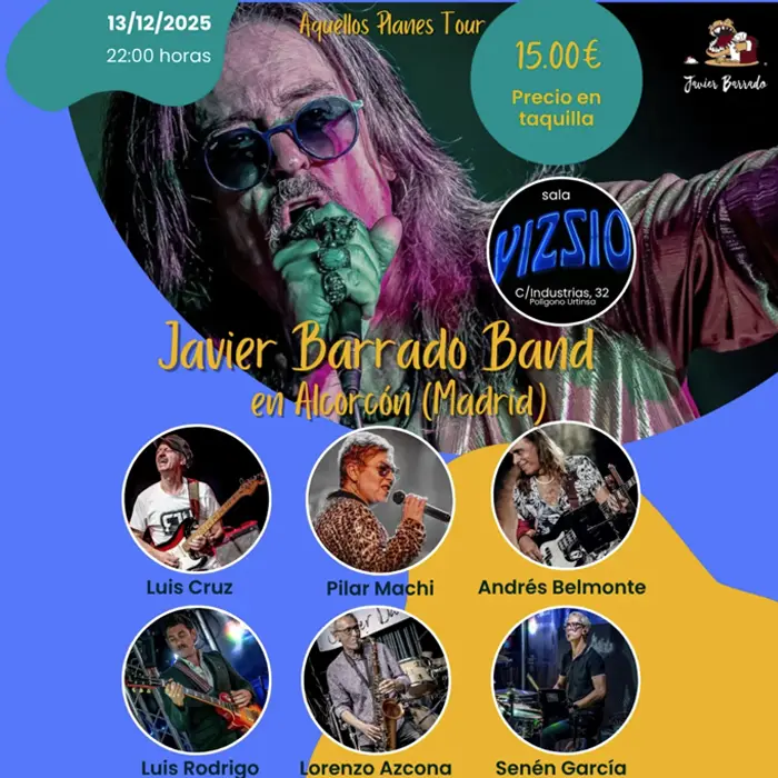 La banda de Javier Barrado presentará su más reciente trabajo, ‘Aquellos planes’, el próximo sábado 13 de diciembre en la Sala Vizzio de Alcorcón (Madrid). El grupo estará formado por Luis Cruz (guitarra), Pilar Machi (coros), Andrés Belmonte (bajo), Luis Rodrigo (guitarra), Lorenzo Azcona (saxo), Senén García (batería) y el propio Barrado a la voz.