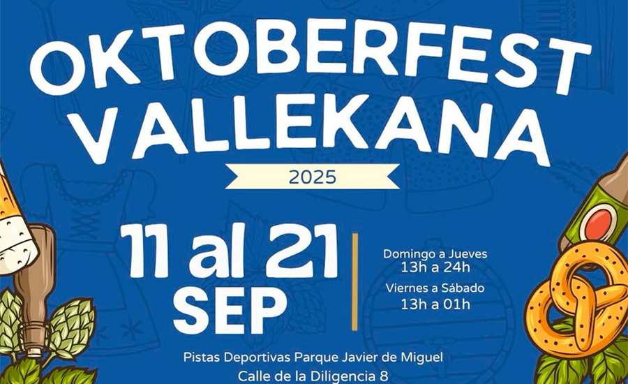 Llega una nueva edición de la OktoberFest a Vallekas. Desde hoy mismo, 11 de septiembre, y hasta el 21, a partir de las 13:00 del mediodía, podremos disfrutar de cervezas, conciertos y animaciones varias en las Pistas Deportivas Parque Javier de Miguel, en la calle de la Diligencia 8, en el Distrito de Puente de Vallecas de Madrid.