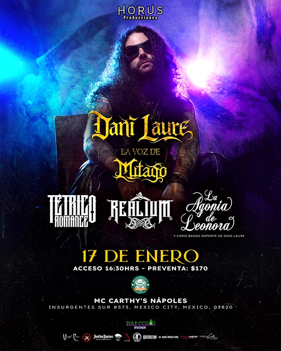 17 de enero - CDMX, México – MC Carthy´s Napoles (Show especial eléctrico de Dani Laure, con La Agonía de Leonora como banda soporte, además de Tétrico Romance y Realium).