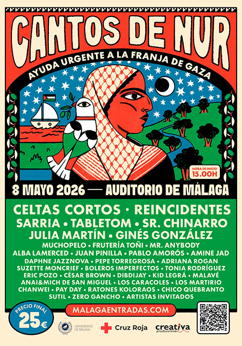 Cantos de Nur, concierto que unirá música y solidaridad en un mismo evento, ha sumado a Reincidentes a su extenso cartel. El espectáculo, organizado por Cruz Roja y Creativa Producciones, tiene como objetivo destinar la recaudación a reforzar la campaña de ayuda humanitaria en la Franja de Gaza. Este despliegue musical se llevará a cabo el 8 de mayo en el Auditorio Municipal de Málaga. En él participarán bandas y artistas nacionales del calibre de Celtas Cortos o Ratones Koloraos, entre otros. Si quieres poner tu granito de arena, ya puedes adquirir tus entradas en este enlace.