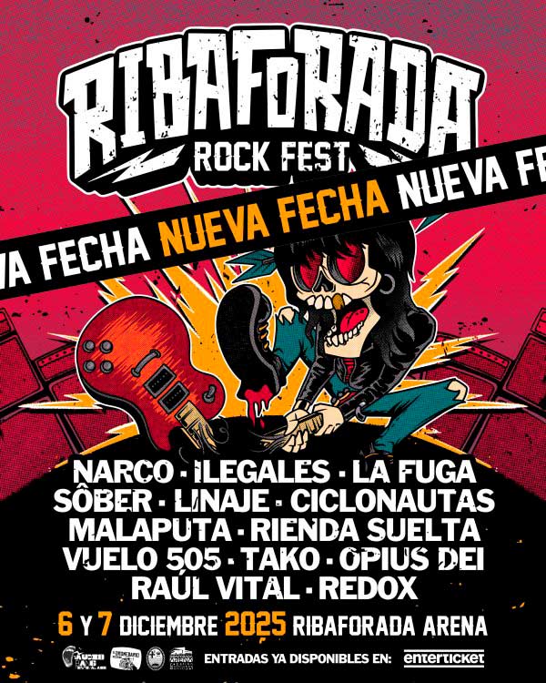 Recordemos que la segunda edición del Ribaforada Rock Fest traerá a artista imprescindibles como Narco, La Fuga, Linaje, Malaputa, Vuelo 505 y Raúl Vital, el sábado, y Sôber, Ilegales, Ciclonautas, Rienda Suelta, Tako, Opius Dei y Redox el domingo. Será en el Ribaforada Arena el 6 y 7 de diciembre de 2025, en la localidad navarra de Ribaforada, desde las 18:00.