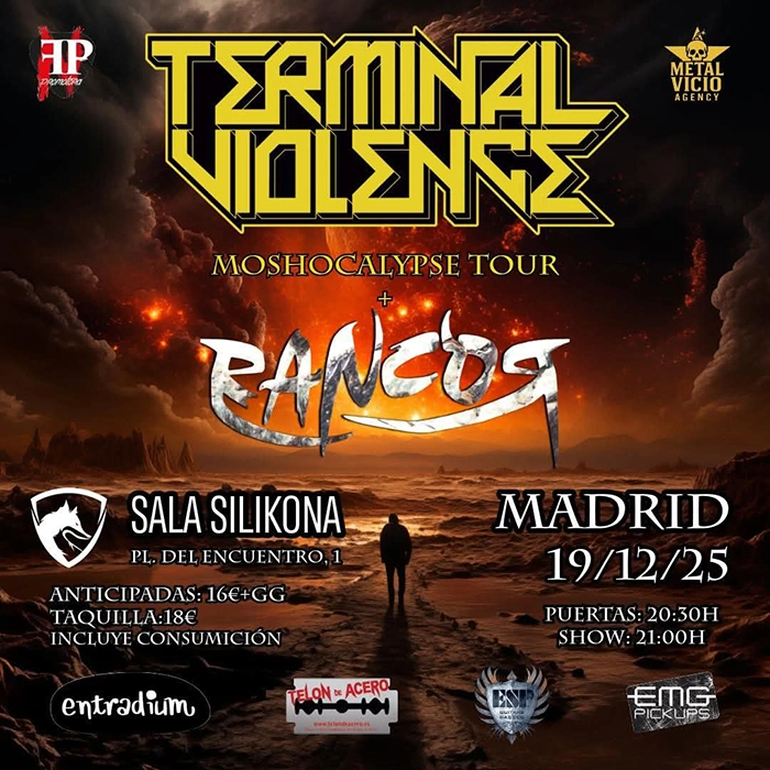 Concretamente será el 19 de diciembre mezclando la presentación del arrollador ‘Moshocalypse’ de una de las bandas emergentes más sólidas como son Terminal Violence, con la veteranía y contundencia de los locales Rancor, uno de los nombres más reputados y respetados dentro de la escena del thrash local. La velada promete ser demoledora, así que no te lo pierdas. Las puertas se abren a las 20:30 y ya podemos comprar las entradas en este enlace.