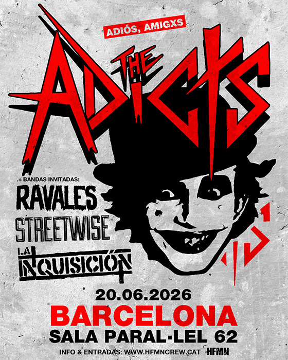 - The Adicts anuncian un concierto en Barcelona dentro de su gira de despedida “Adiós Amigos Tour”, junto a La Inquisición, Streetwise y Ravales - 1 abril 2026