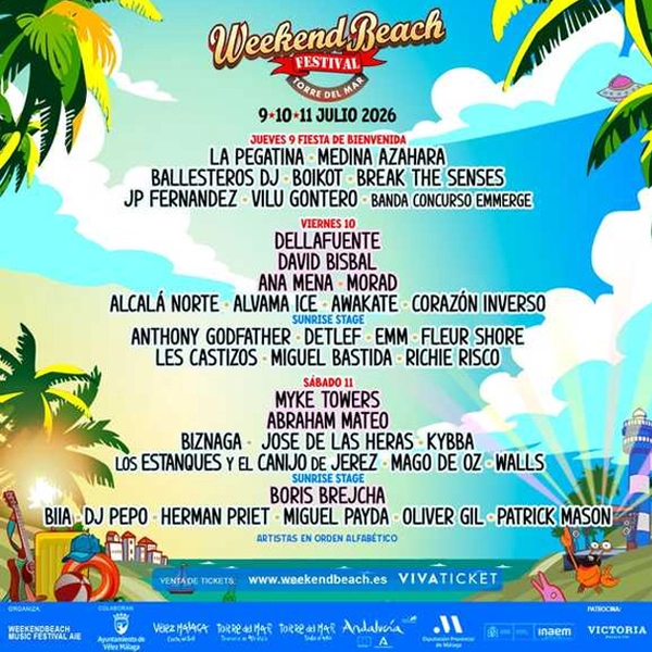 Los días 9, 10 y 11 de julio están reservados en el calendario para la celebración de una nueva edición del Weekend Beach Festival en la malagueña localidad de Torre del Mar, con Mägo de Oz, Medina Azahara, Boikot o Alcalá Norte entre las propuestas rockeras del ecléctico cartel que la organización ya nos presenta dividido entre sus tres jornadas.