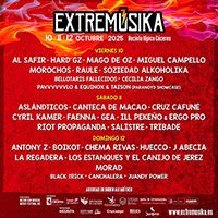Tres días repletos de la mejor música nos esperan en el gran festival que cerrará la temporada de eventos al aire libre por todo lo alto, Extremúsica, para cuya celebración quedan ya solo una semana, con los días 12, 13 y 14 de octubre marcados para disfrutar del cartel que