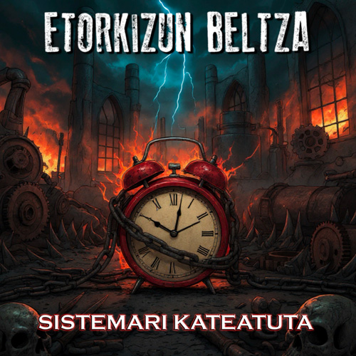 El afilado y contundente heavy metal de los vizcaínos Etorkizun Beltza continúa arrasando, esta vez retomando sus lanzamientos en formato single. La agrupación acaba de publicar “Sistemari Kateatuta” (encadenado al sistema) para seguir generando expectación sobre su nueva música y sus próximos directos. Una de las grandes sorpresas de estas